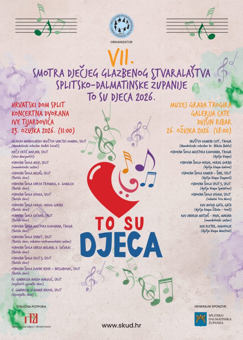 U organizaciji Županijskog stručnog vijeća učitelja Glazbene kulture Splitsko-dalmatinske županije i Saveza kulturno-umjetničkih društava Splitsko-dalmatinske županije, uz stručnu potporu Agencije za odgoj i obrazovanje RH te pokroviteljstvo Županije Splitsko-dalmatinske, i ove je godine održana Smotra dječjeg glazbenog stvaralaštva pod nazivom „To su djeca“.